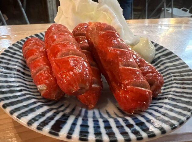 3軒目 「まるまさ家 姫路本店」 姫路の飲み屋といえば「まるまさ」でしょう。「スタミナ焼肉まるまさ」や「まるまさ家 姫路のれん街」は行くことがありますが、実は本店には行ったことがなかったんですね。そこで〆は「まるまさ家 姫路本店」にしました。結構、満腹状態だったんで軽く「梅肉きゅうり」「赤ウインナー」「おにぎり」で終了です。日本酒は、本田商店の「龍力ドラゴン」。じっくりと米の旨みを感じたい人向け。