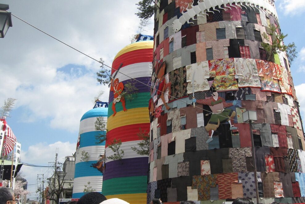 2013年の三ツ山大祭です。高さ18m×直径10mという巨大な3基の釣鐘型の置山