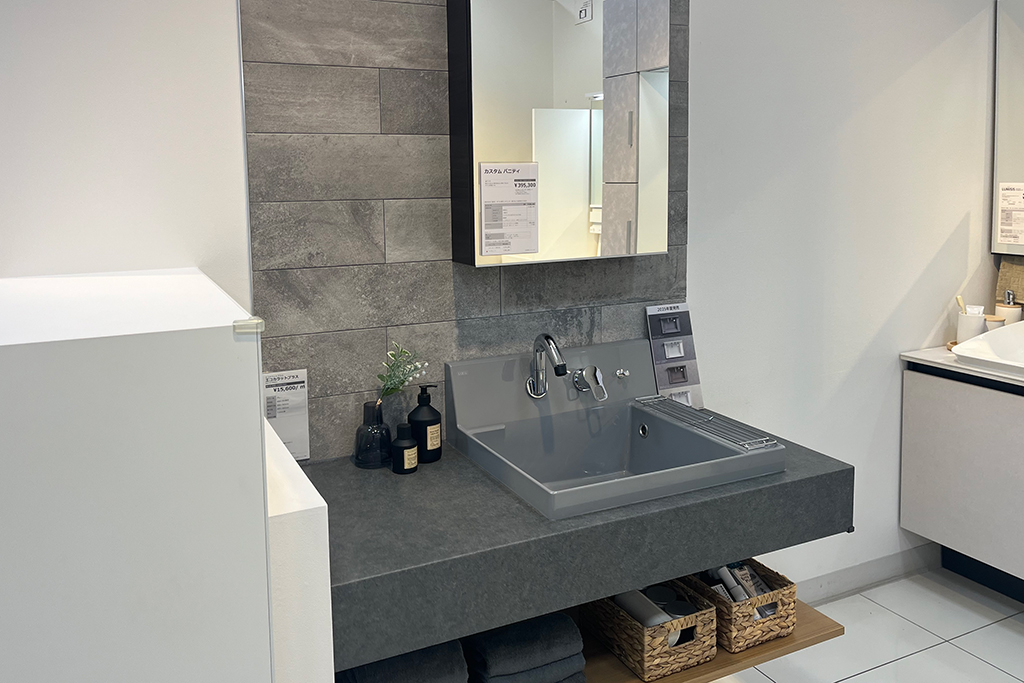 使い勝手の良い洗面ボウルと上質なカウンターを自分らしくアレンジできるカウンター洗面から、小物のストックから背の高い洗剤までたくさん収納できる収納力抜群の洗面台まで、豊富なラインナップ。